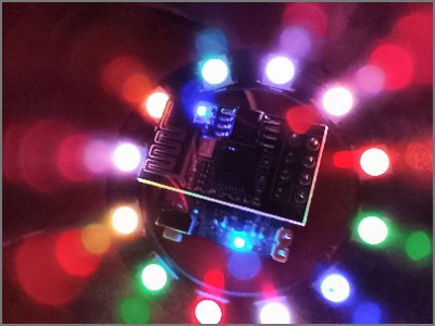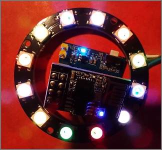 I brought some 12 LED rings and wrote some HTML CANVAS javascript, to allow some animation expriments.